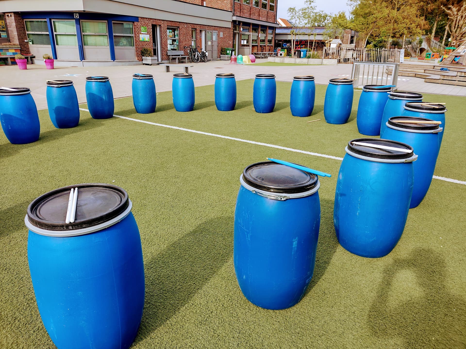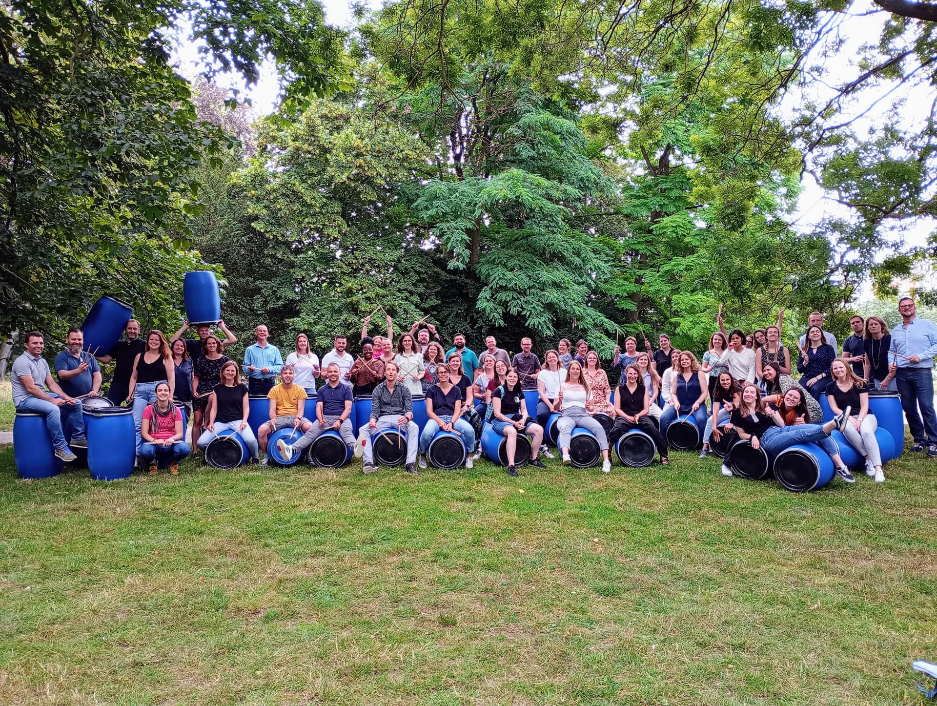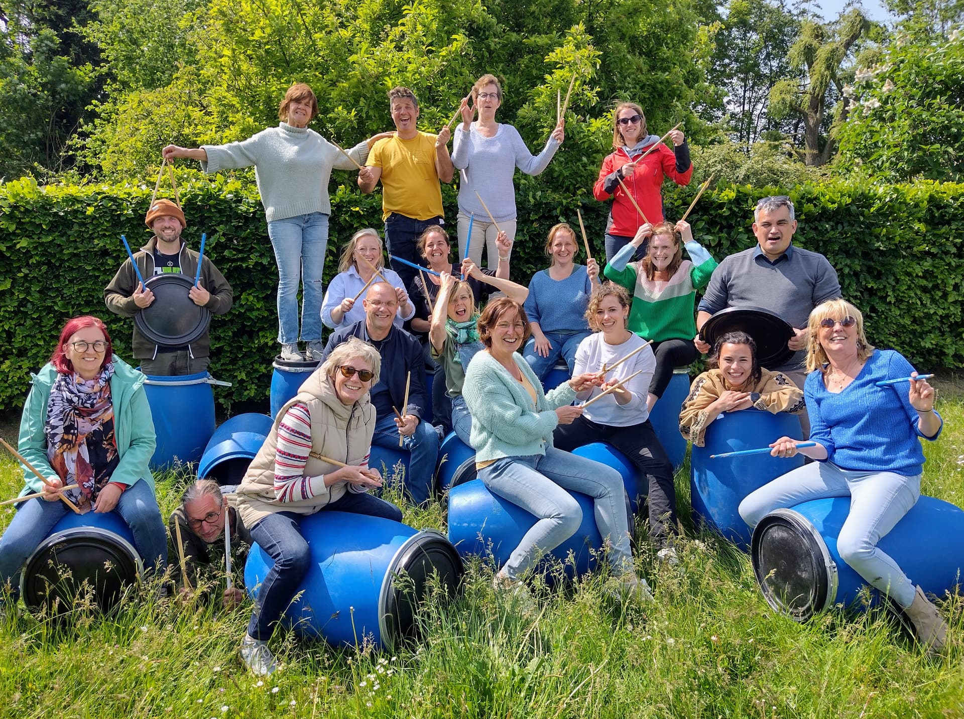 Play danceable rhythms together on large barrels! We bring a barrel for everyone and a few real drumsticks. These barrels sound surprisingly fun! In an accessible way, we play all kinds of catchy rhythms together and dive into a world of rhythm and fun. We always start easy, give the group a challenge, and end with an exciting musical drum battle in 4 groups. The focus is 100% on fun and atmosphere!