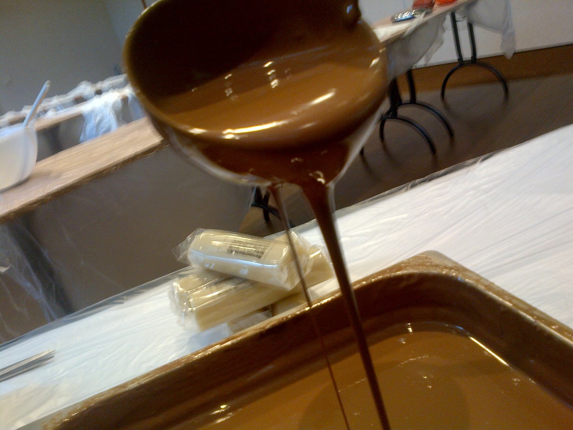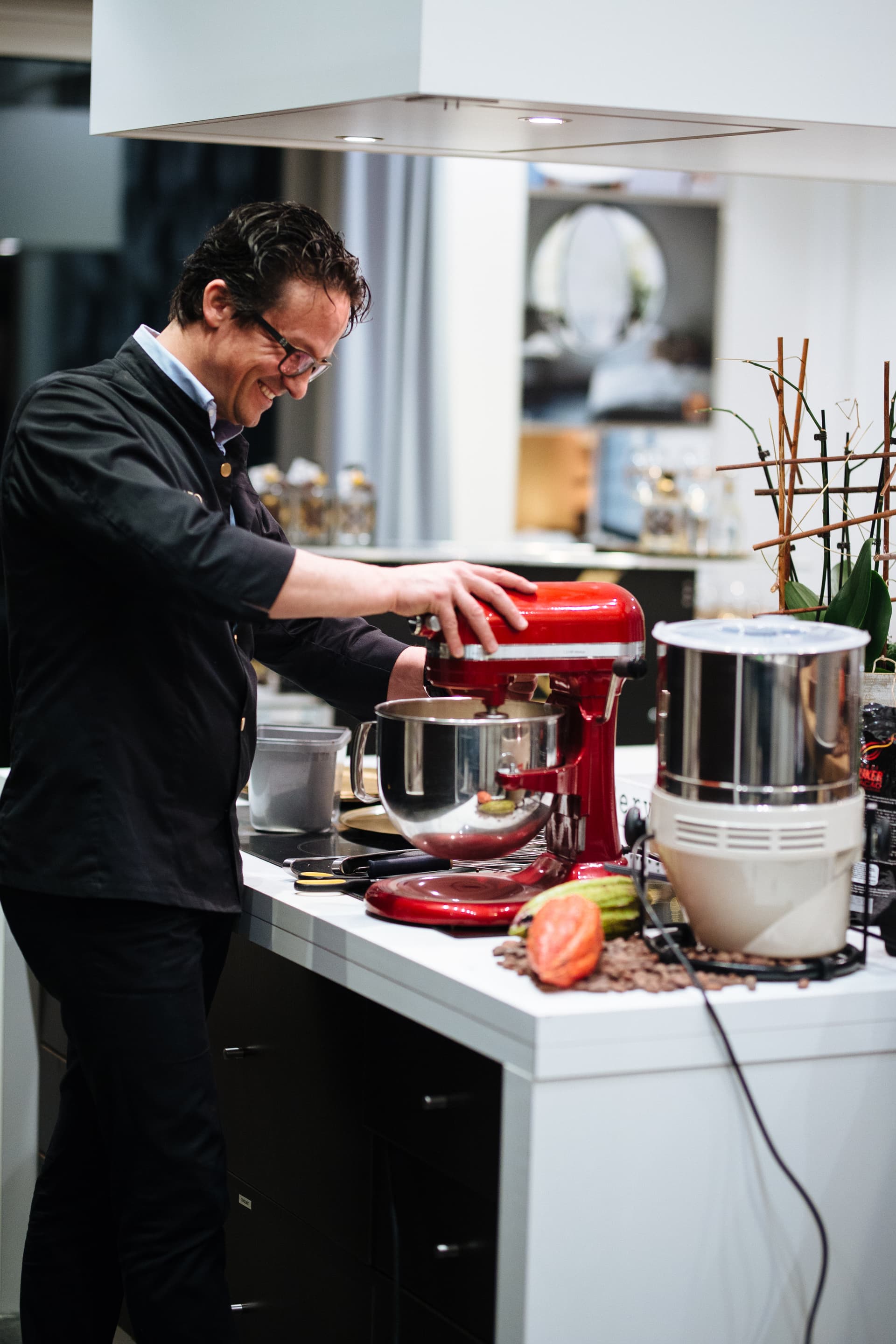 First, we stimulate the taste buds by sniffing chocolate powder mixed with 13 spices from the Swiss Alps. Then, we taste some chocolates and embark on a journey through the world of chocolate, making chocolate from the cocoa bean. We have an actual cocoa tree with us for illustration and will demonstrate how to make chocolate starting from the cocoa bean. After that, everyone will create their own chocolate bar with accompanying garnishes.