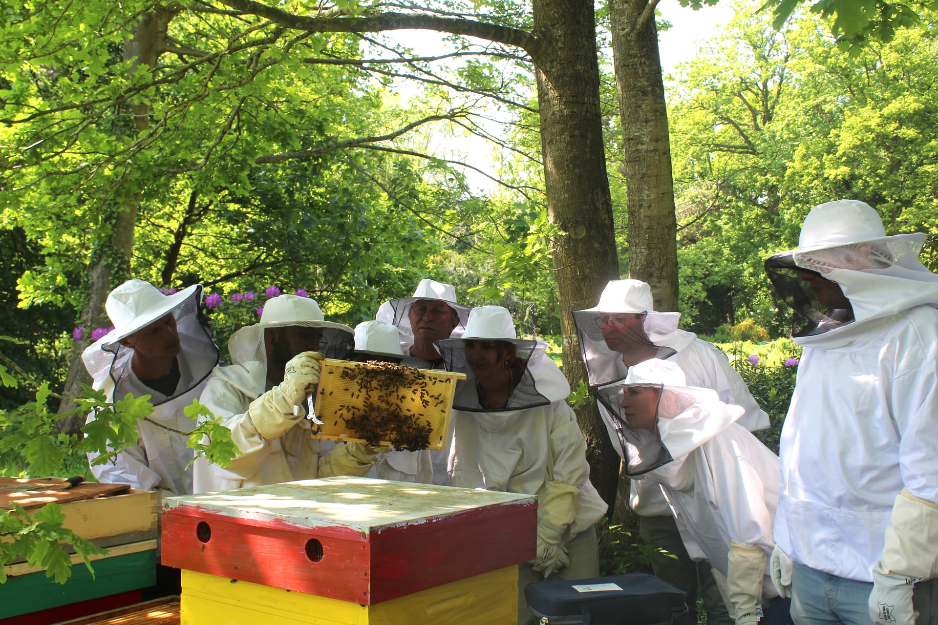 This team-building activity is all about the senses: seeing, smelling, hearing, and feeling. We start with an interactive introduction where participants learn about the life cycle of the bee. Then we dive together into the intriguing world of bees. We open a beehive, observe what's inside, and look for eggs, larvae, honey, pollen, dancing bees, and other fascinating elements.