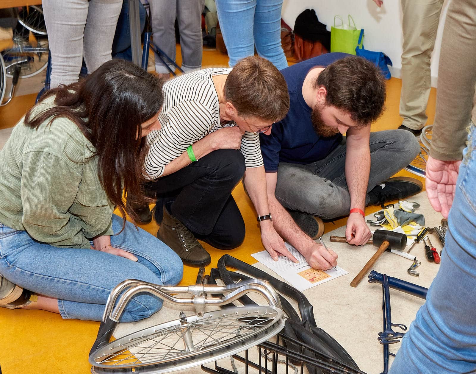 Teams start with just a frame and tools. What follows is a dynamic programme in which all participants remain involved until the end to strive for the best possible end result. Bike parts are acquired through strategic purchasing and negotiation. Then part of the team gets to work on the parts, bolts and nuts, while others tackle our brainteasers to earn accessories. At the end of this event, participants test the bikes. Under the watchful eye of all participants, the lap of honour follows and the winning team receives an original prize.