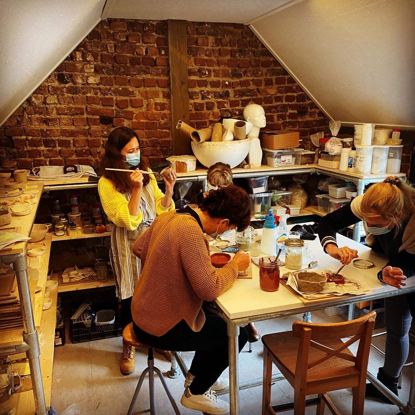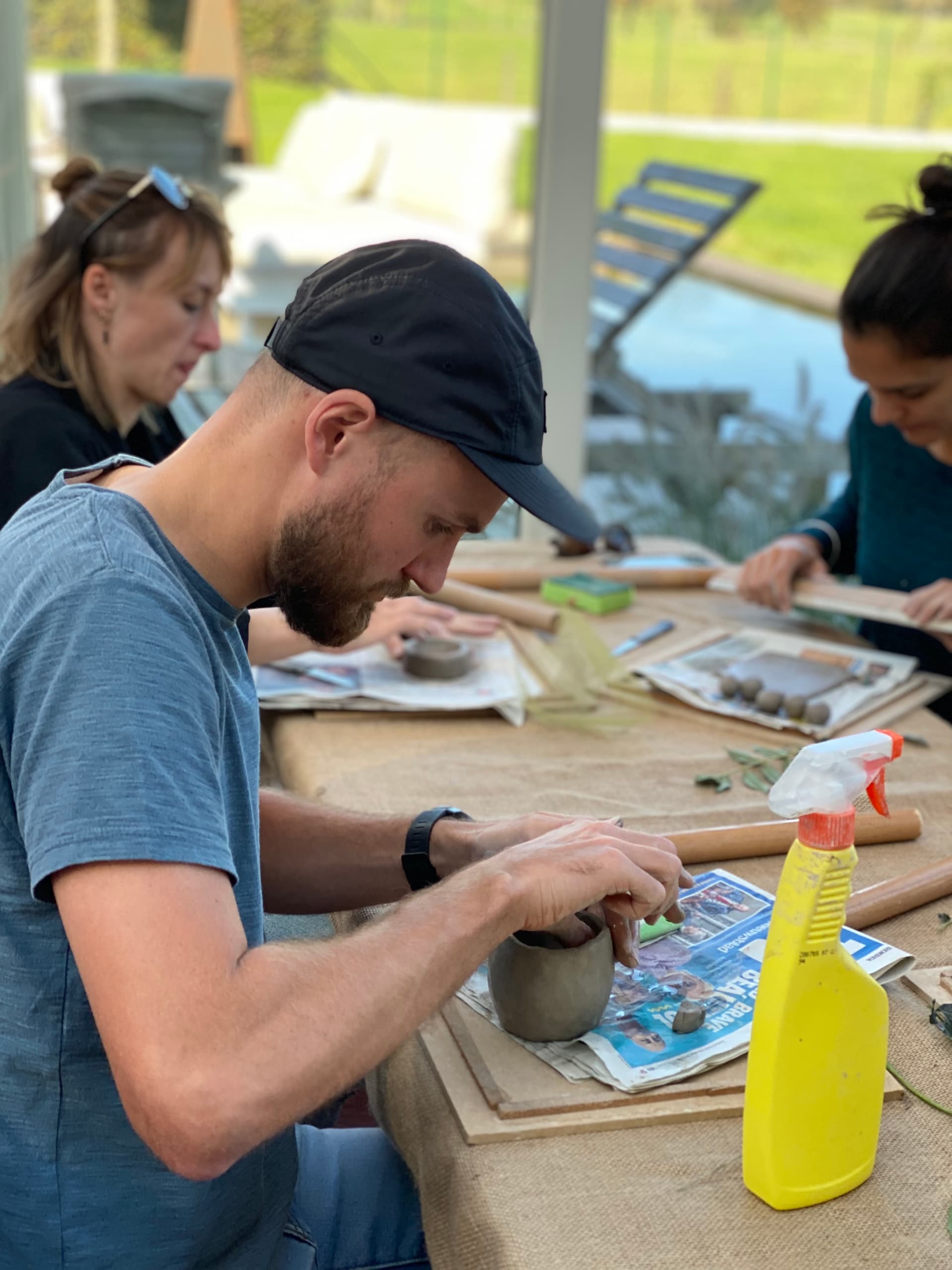 For 2 hours, we’ll hand-build pots using clay. No prior experience is required, and everyone will create a fun, handmade piece. You will decorate your creation with engobes (liquid clay), and we will fire it (at 1050°C). Upon request, the group can work on a collective piece, or create figurines or bowls. You're welcome in our studio, or we can come to your location. The workshop is led by experienced ceramicists!