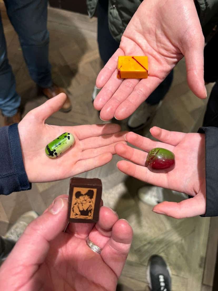 The tour for chocoholics! During this fun and tasty tour, you visit the crème de la crème of Bruges chocolatiers, several of whom have been awarded the prestigious Gault Millau rating. We take a look in their open workshop and meet the passionate craftsmen behind the creations, while you enjoy numerous delicious pralines, chocolates & local sweets (minimum 8 tastings).