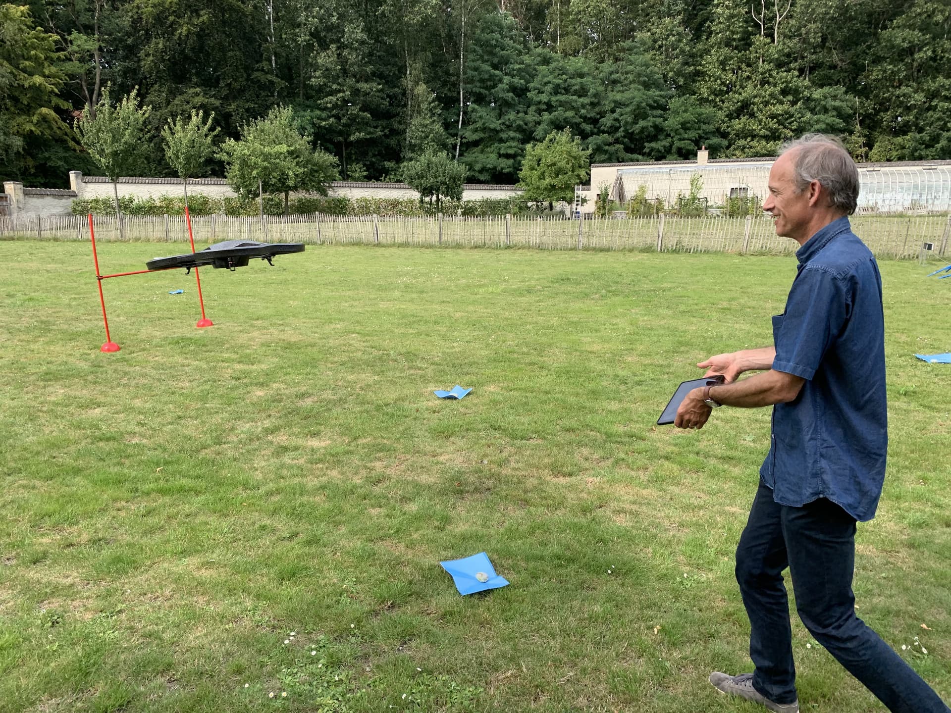 Drone flying: space of 20m by 10m with soft ground.