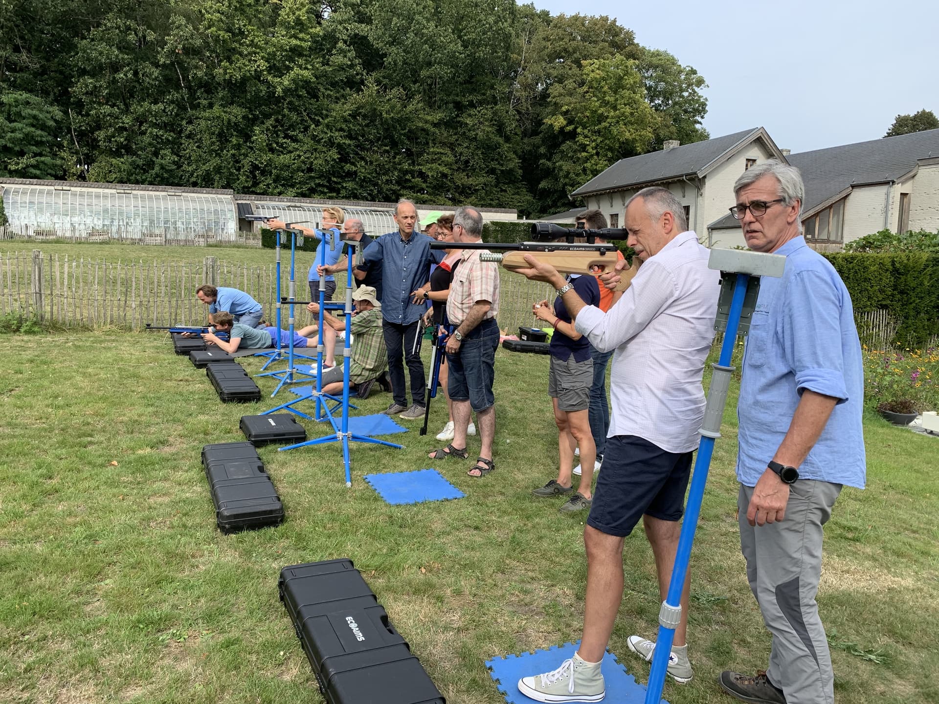 Infrared biathlon rifle and pistol shooting: space of 6m by 12m.