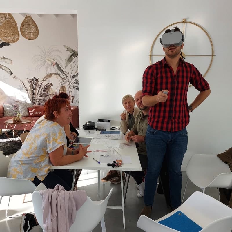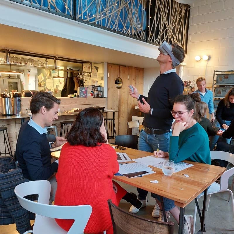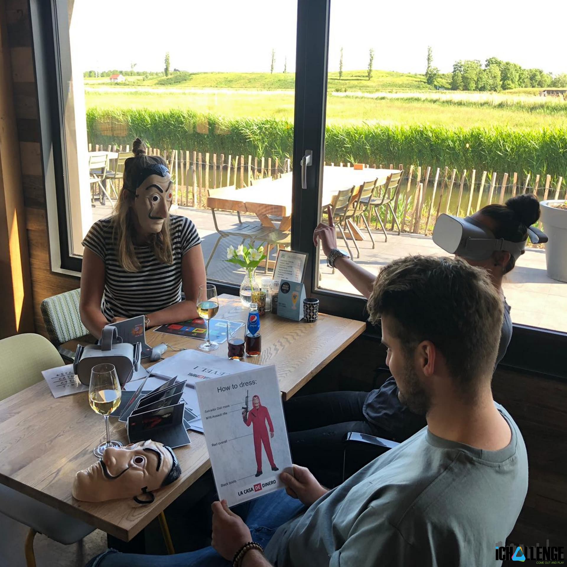 All teams compete against each other and each team will get 1 VR glasses. During the different levels you pass on the glasses, that way each team member can spot the clues. By using our attributes and all the clues, you can break the codes.