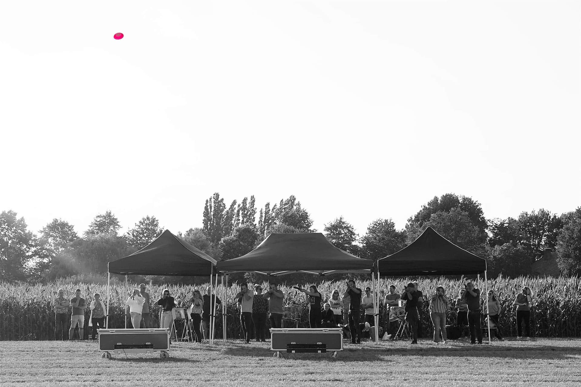 Naast professionele begeleiding hebben we ook standaard statafels, bankjes en bij slecht weer ook tentjes bij ons om de activiteit aan te kleden.