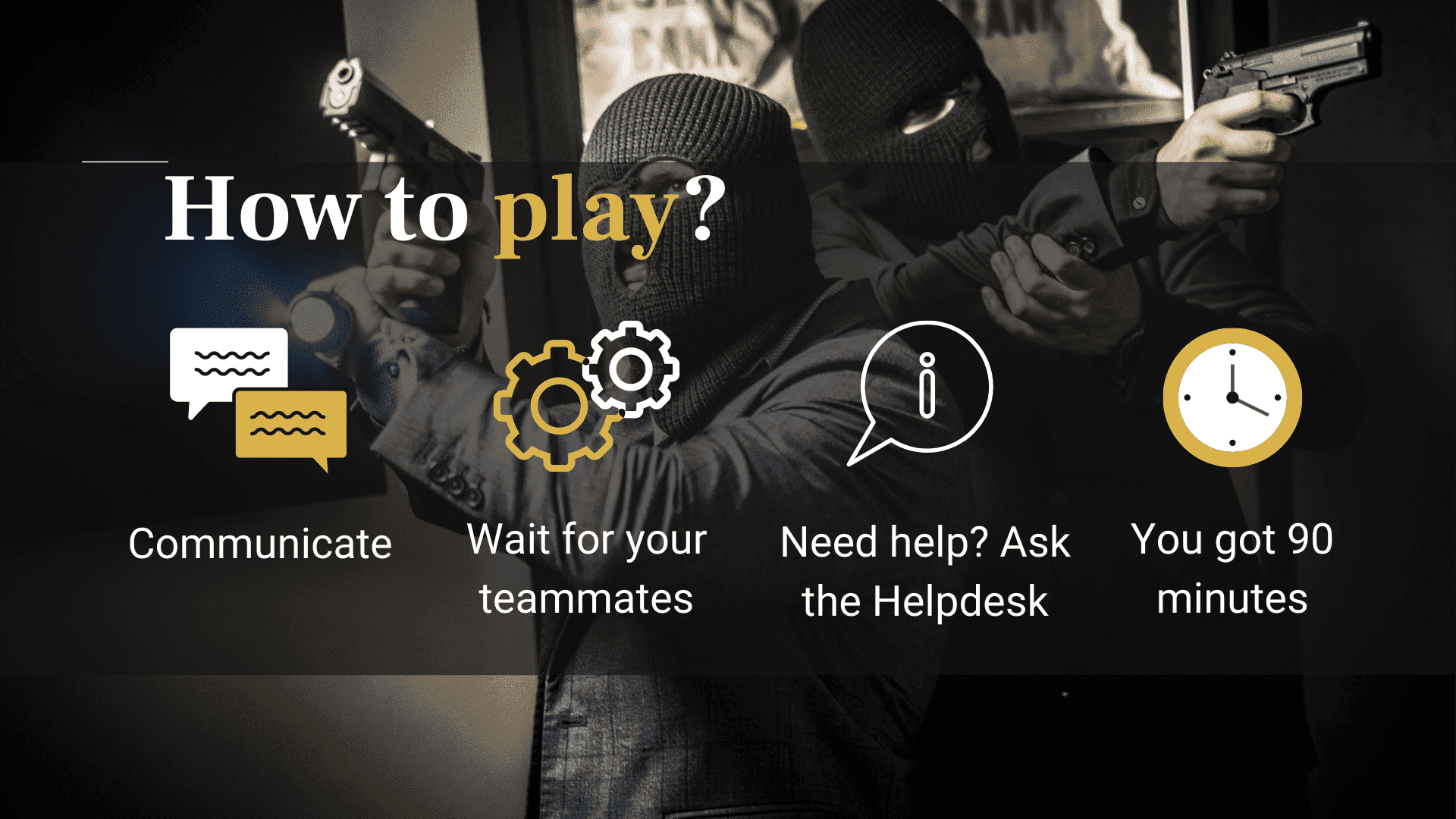 The setting: After a part of your team gets stuck during a bank robbery it is up to you to lead them safely out of there. Each player has his own role and must work together with his team to solve all puzzles and rob the bank. Escape as a team and outwit the police.