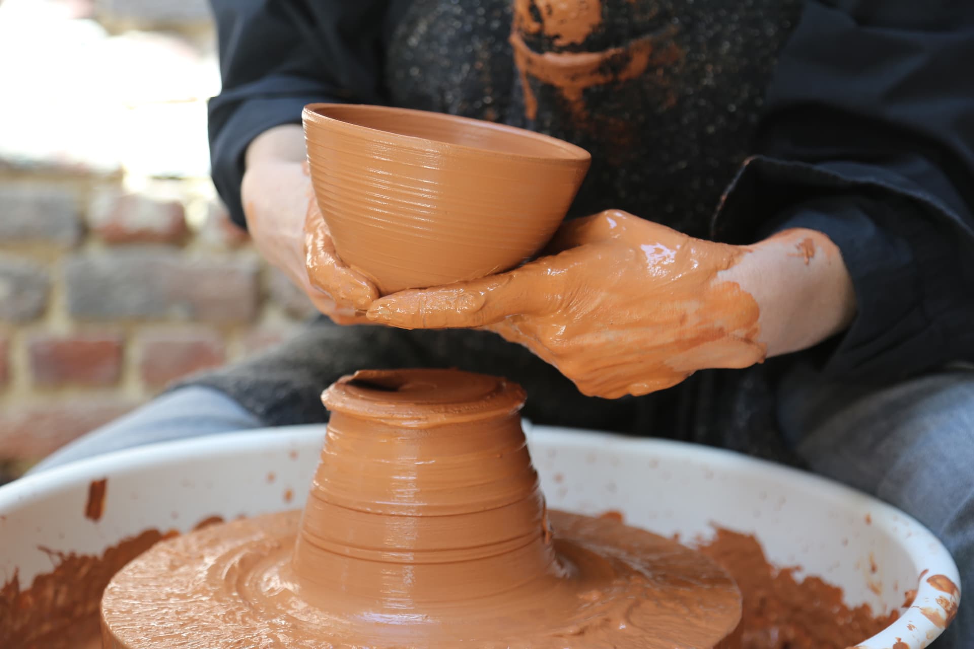 Participants are welcomed by the instructor, who explains the pottery wheel technique for a few minutes. They are then seated in front of their own pottery wheel. The instructor guides them in their movements, and they can attempt to shape several pieces of their choice. The pieces are then fired and glazed by the staff and will be available for pick-up in the following weeks.