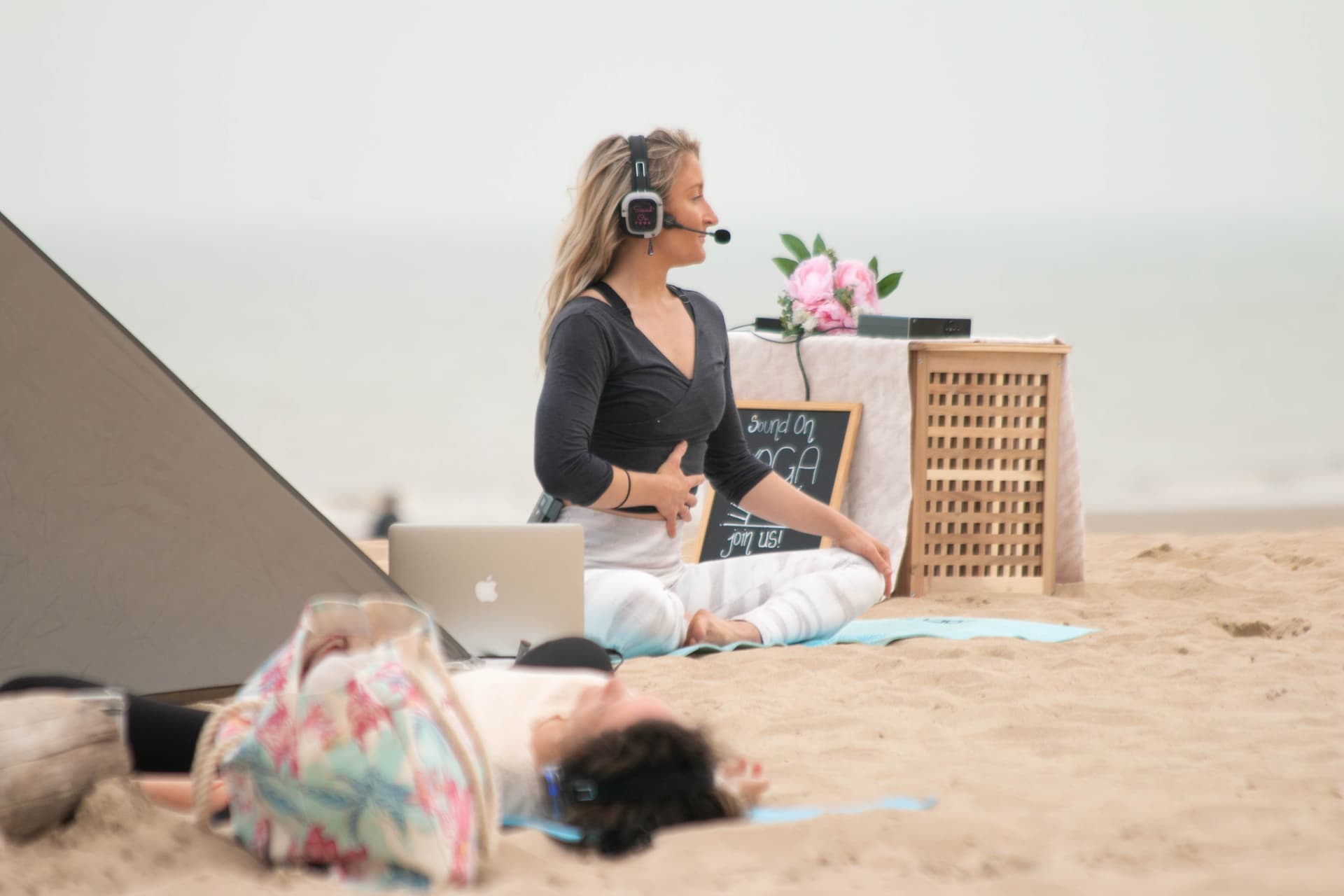 Experience yoga in an original and exceptional way: using our wireless headphones, you fully immerse yourself in your zen cocoon and experience pure physical and mental wellness. Offer your colleagues a great break at the office, conference, or during your company weekend. From conference energizer to workshop, our sessions always result in a significant energy boost.