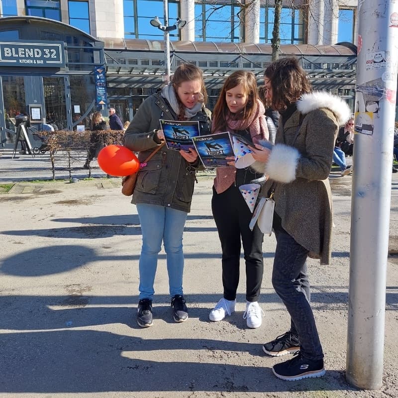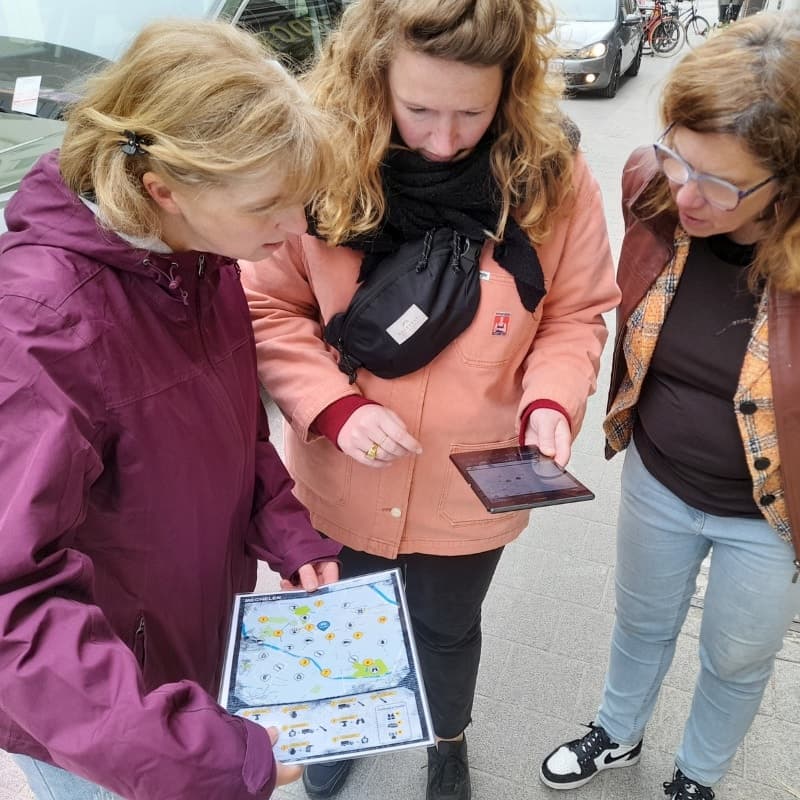 To commit the crimes, the gangsters must steal (virtual) items - such as knives, explosives, and rope ladders - hidden across the city. At certain locations, these items can be exchanged for money. However, each time an item is stolen or a crime is committed, the police are alerted via satellite signals. Every 3 minutes, the gangsters can check the police’s location. Time to lay mines or activate their bulletproof vest to avoid getting caught. Will the police catch the gang before they hit €1,000,000?