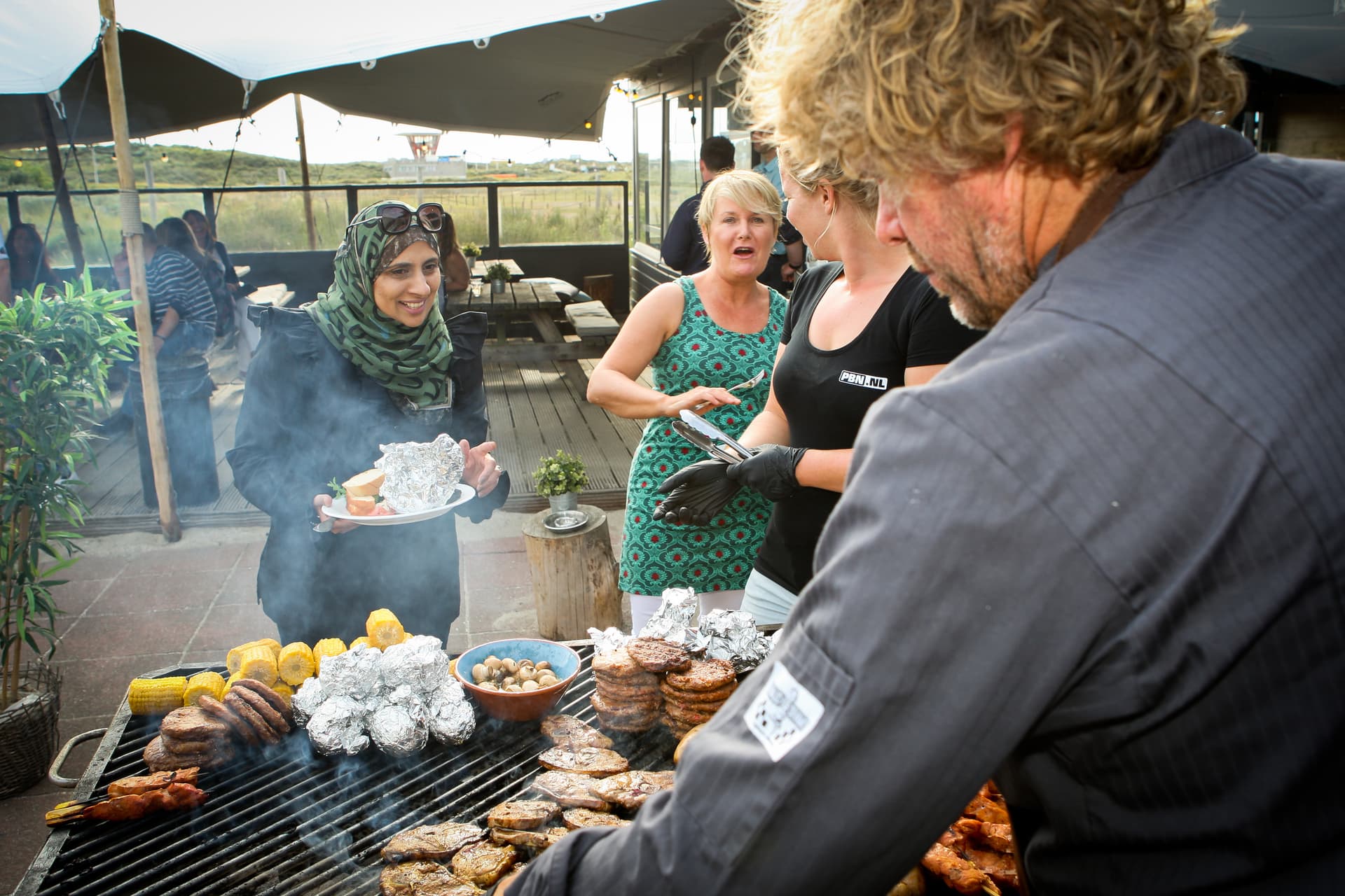 6:30 PM Drinks & Barbecue, We enjoy a delicious barbecue with a view over the Kennemermeer