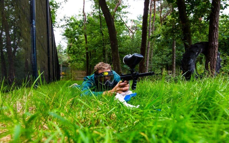 At our location, paintball is played in the forest. The field is filled with various obstacles. In addition to trees and bushes, there are bunkers, large pulleys, and tractor tires. There are also trenches on the field, but do you dare to go there? Find out during this thrilling activity! Paintball includes coveralls, face protection, and of course, a paintball gun with a supply of paintballs.