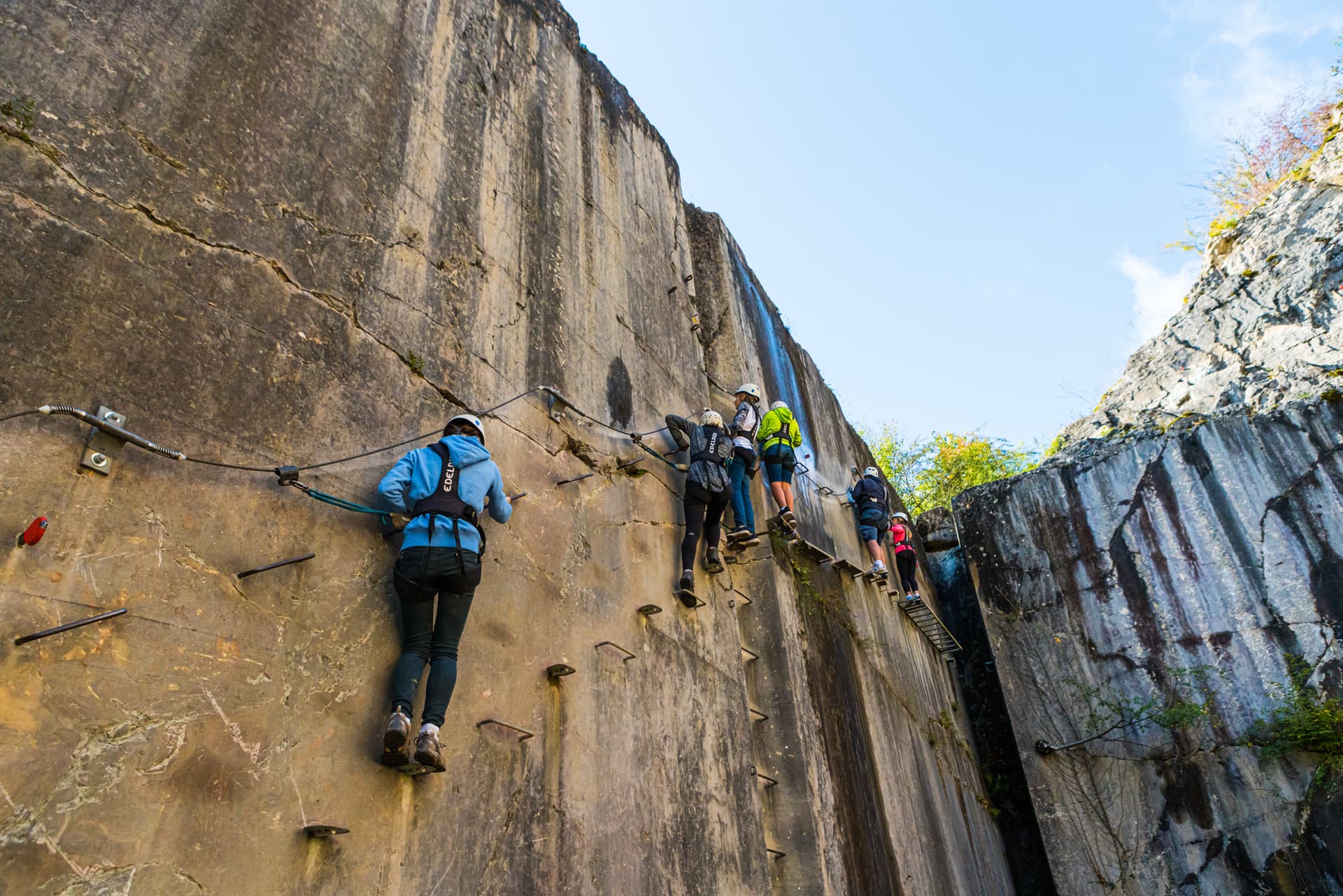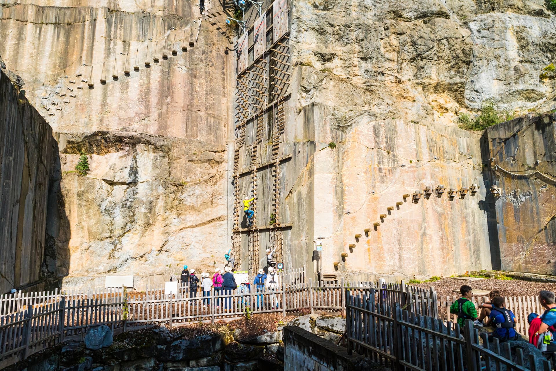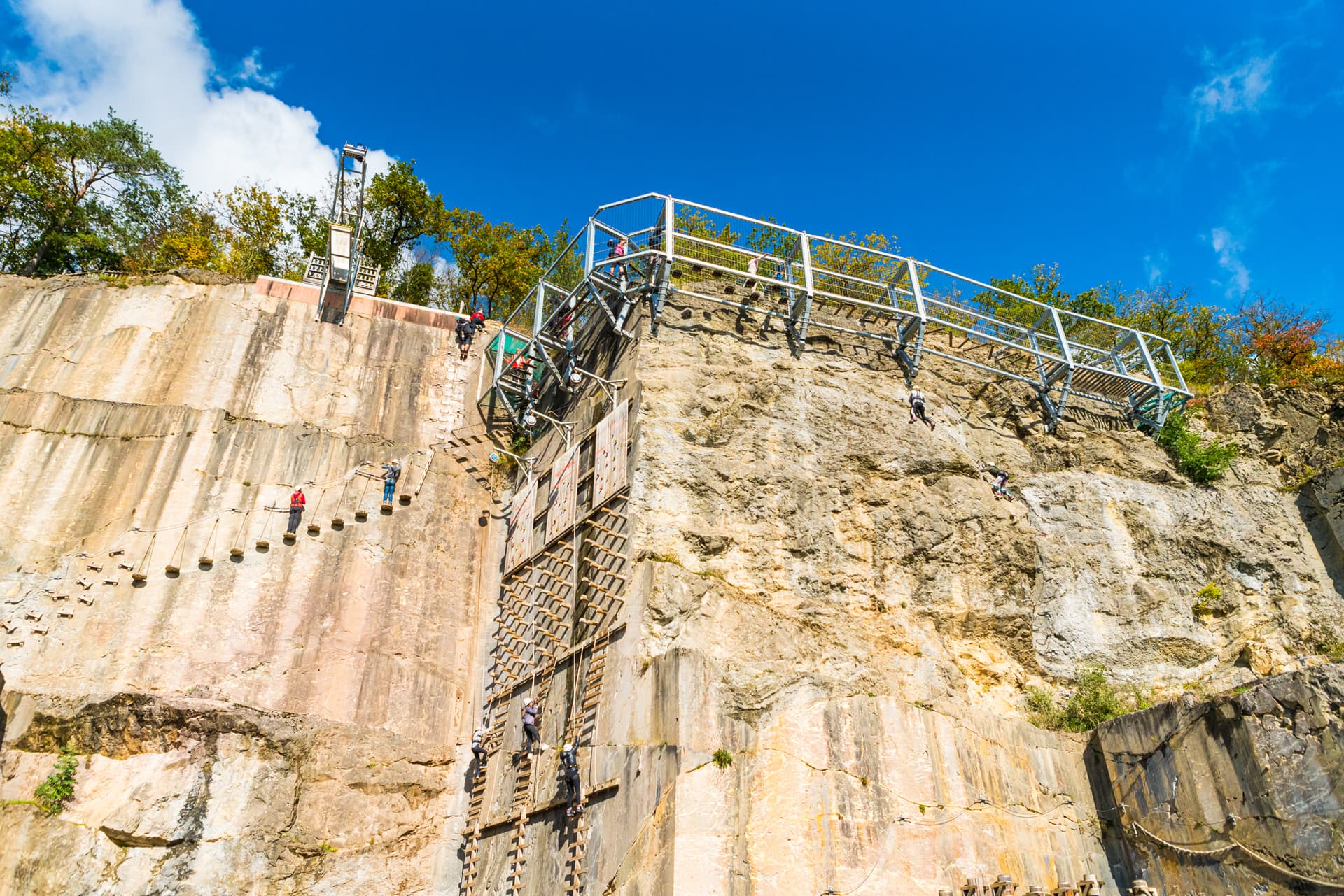 Grimpez à votre rythme jusqu’au sommet et profitez d’une vue à couper le souffle. Il y a quatre via ferrata de niveaux variés. Trois d’entre elles atteignent une hauteur de 32 mètres. Après l’ascension, vous pouvez redescendre à pied ou tenter le saut dans le vide. Le Freefall est un saut sécurisé de 32 mètres qui vous donne une sensation de chute libre avant d’atterrir doucement sur vos pieds