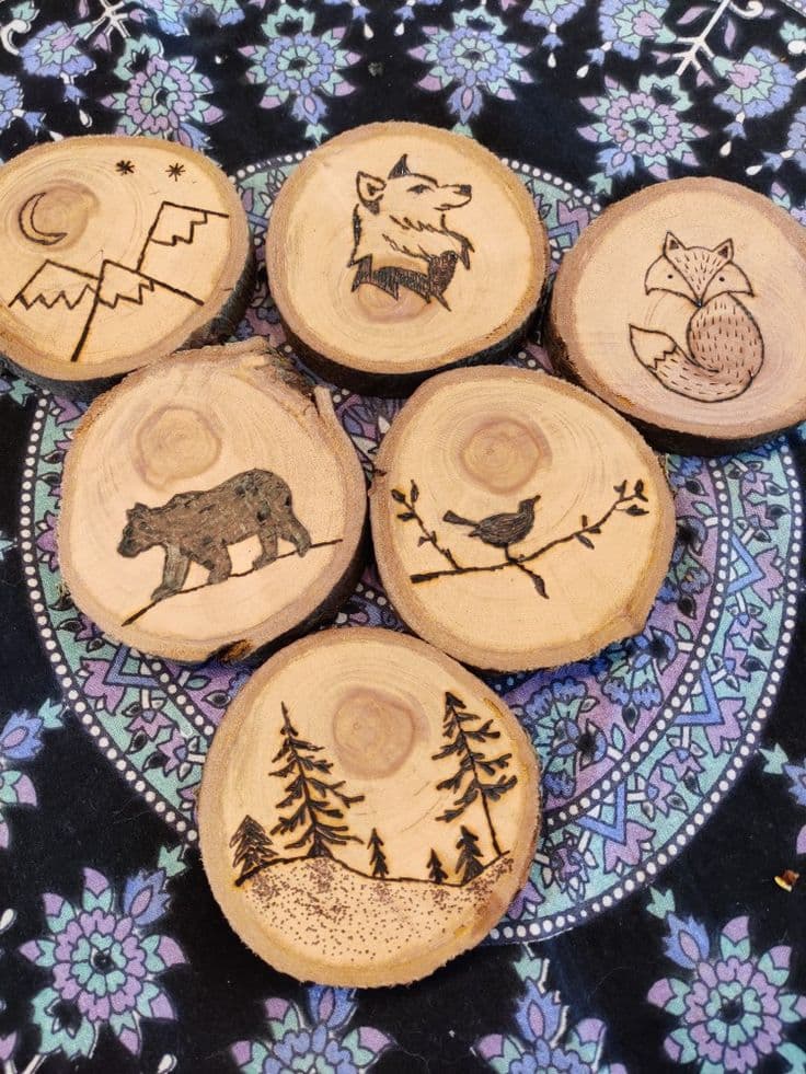Choisissez votre habitant préféré - d'un coléoptère curieux à un papillon gracieux - et gravez son image avec amour sur une tranche d'arbre. Pas besoin d'être un talent en dessin, car nous transférons les dessins avec du papier carbone. Bien sûr, vous êtes libre de créer quelque chose de complètement différent ! Nous vous aidons avec les techniques et les outils pour immortaliser votre idée. Parfait pour les amoureux de la nature et les créatifs en quête de quelque chose de spécial.