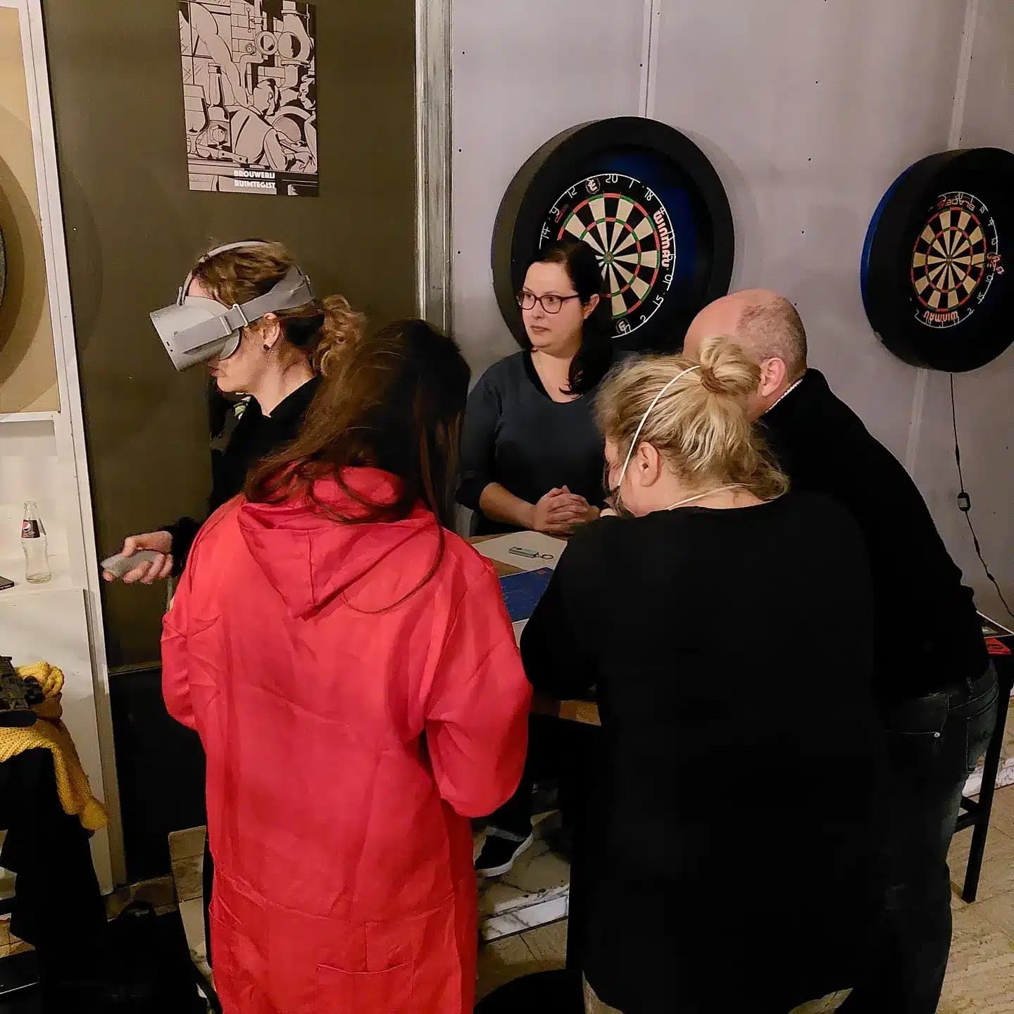 Des équipes de 4 à 6 joueurs tentent de réussir le jeu d’évasion dans le monde de la réalité virtuelle. Faites le lien entre le monde VR et les indices et documents présents sur la table. Une bonne collaboration est essentielle pour accomplir la mission ou les différentes tâches. Une communication claire et une bonne coordination sont également indispensables.