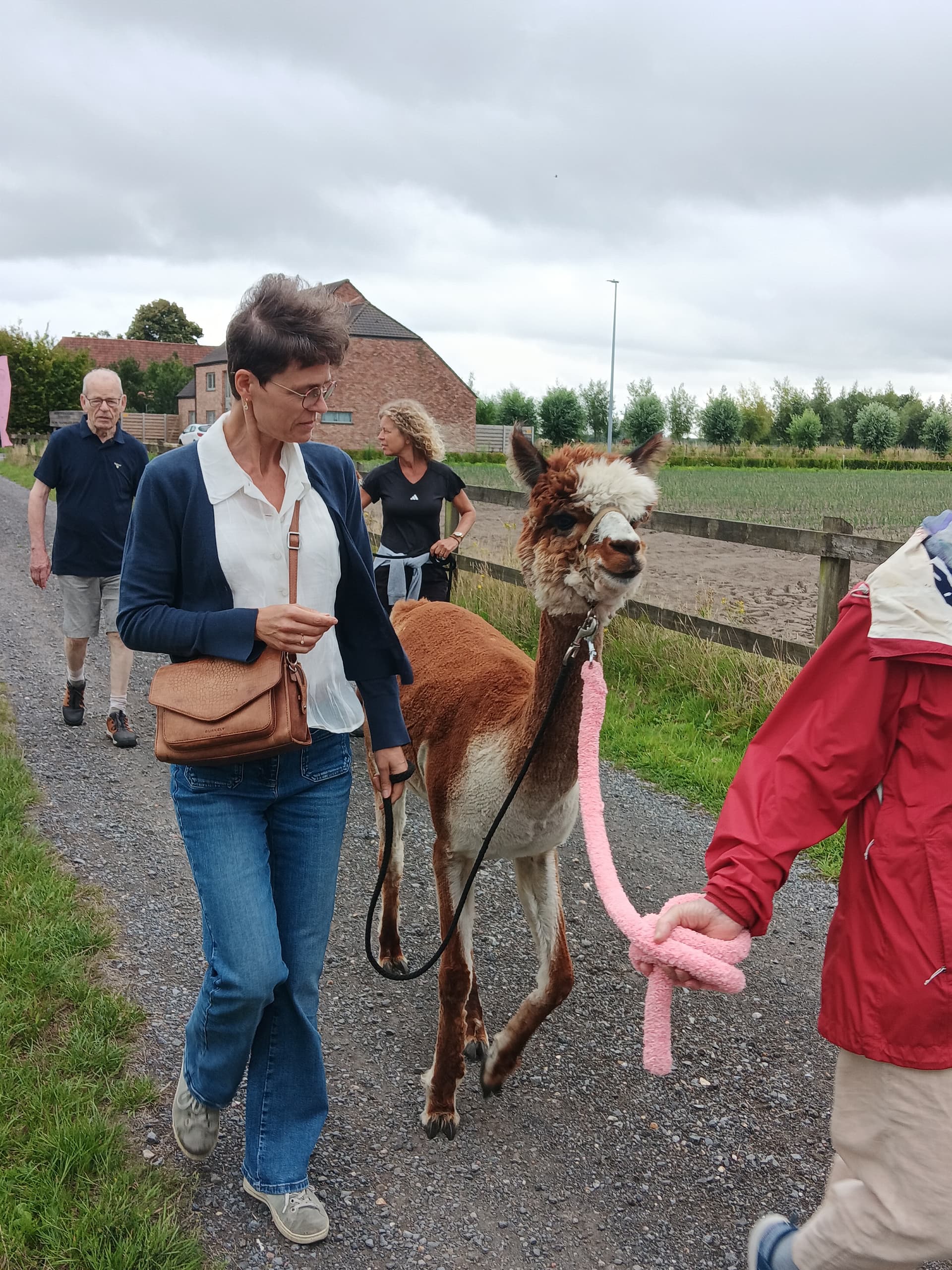 Pendant la promenade avec les alpagas, nous prévoyons également un "paca-pique-nique", afin que chacun puisse nourrir les animaux. Des collègues un peu craintifs face aux animaux ? Pas de souci, ils peuvent facilement participer à la balade avec leurs collègues sans devoir s'approcher de trop près. Nous tenons compte de tout le monde!