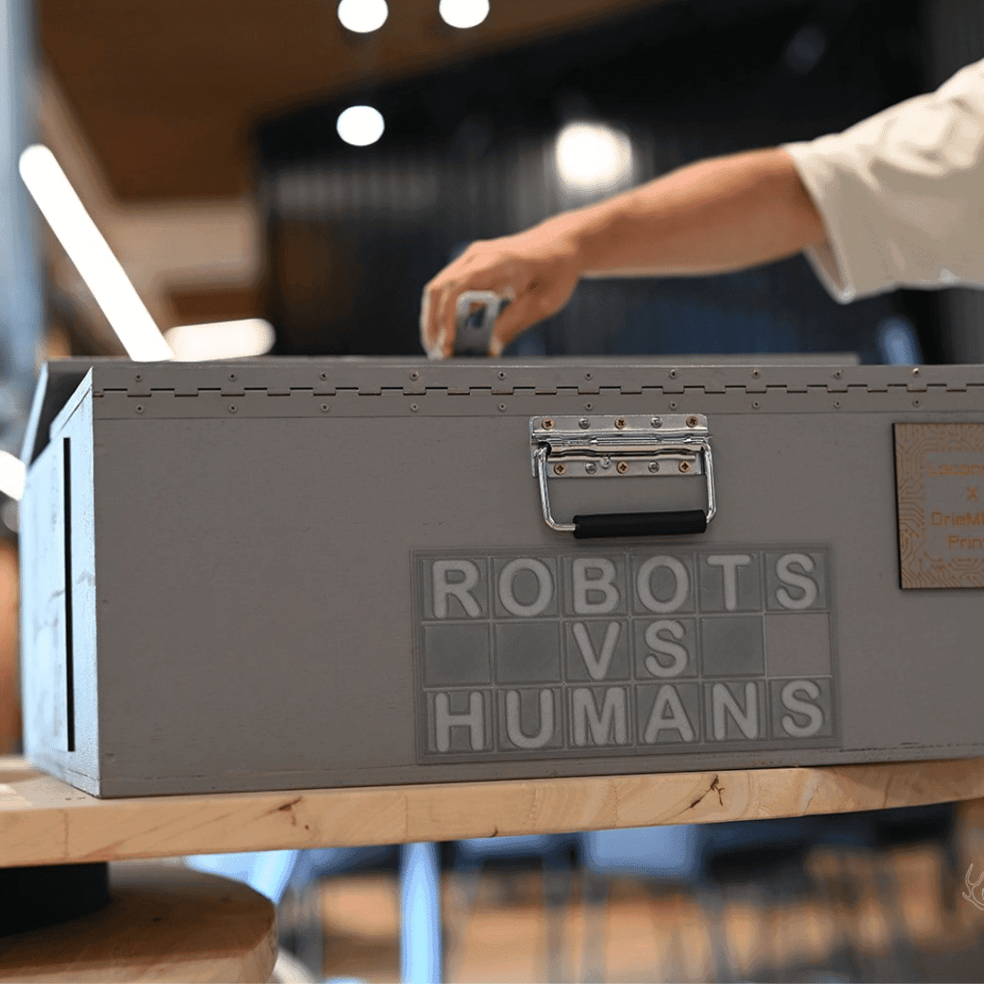 Deze box biedt een spannende en uitdagende activiteit met méér dan 12 puzzels. Teams kunnen hun samenwerkings- en probleemoplossende vaardigheden testen terwijl ze codes kraken en geheime boodschappen ontcijferen met deze 100% 3D-printed Escape Puzzels. De Escape Box teambuilding wordt op locatie naar keuze begeleid door de aanwezige gamemaster(s). Durven jullie het aan om deze unieke en opwindende escape-activiteit te proberen, of nemen de robots het vanaf nu over?