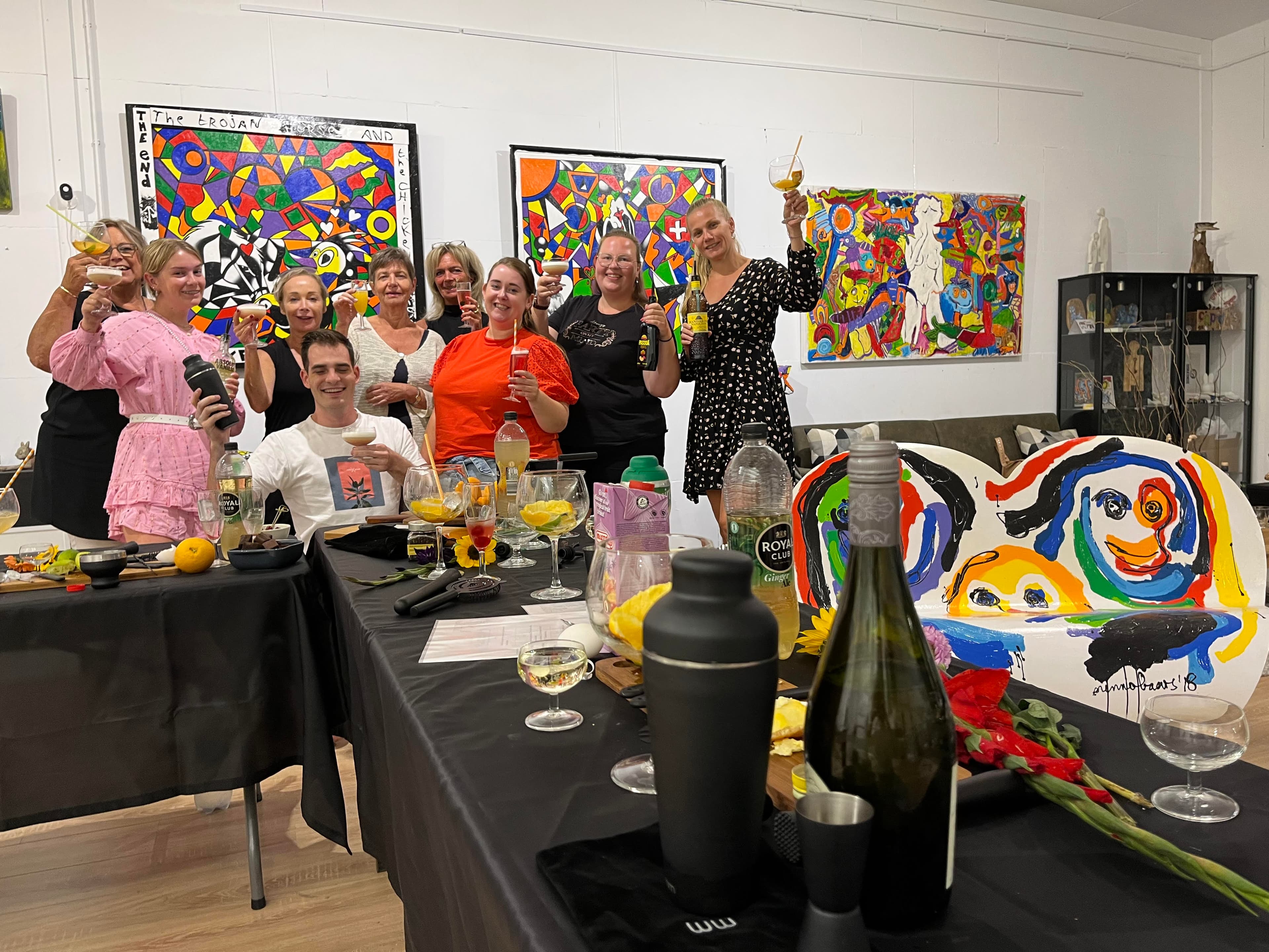 Een goede binnenkomer, daar houden wij van! U wordt ontvangen met een feestelijk welkomstdrankje. Daarna gaat u aan de slag om een eigen- of groepskunstwerk te maken op een unieke, grappige en creatieve manier. Stap binnen in de wereld van een kunstenaar. Na de kunstzinnige workshop presenteren we u, op een speelse wijze, een aantal heerlijke cocktails. Daarna gaat u met uw gezelschap aan de slag om zelf cocktails te maken. Heerlijk genieten van uw zelfgemaakte cocktails! Uiteraard zijn er ook alcoholvrije cocktails.