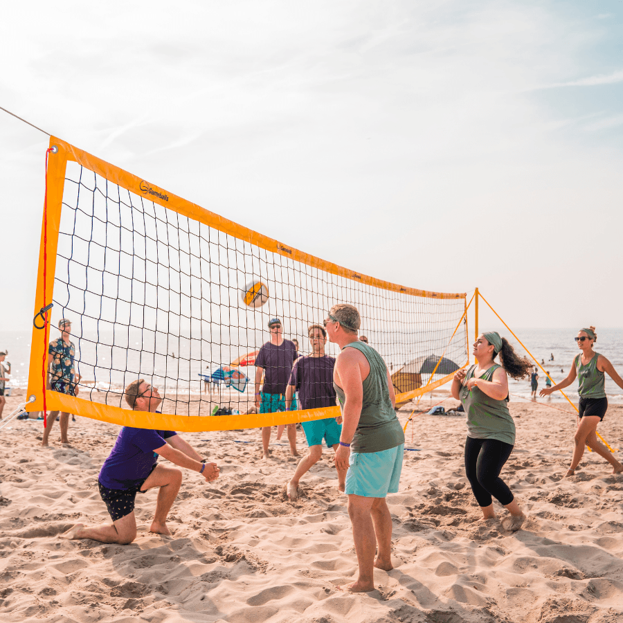 Geniet van de zon en het zand onder je blote voeten terwijl je gezellig een potje volleybal speelt met collega's. Woon een volledig georganiseerd tornooi bij in Scheveningen.