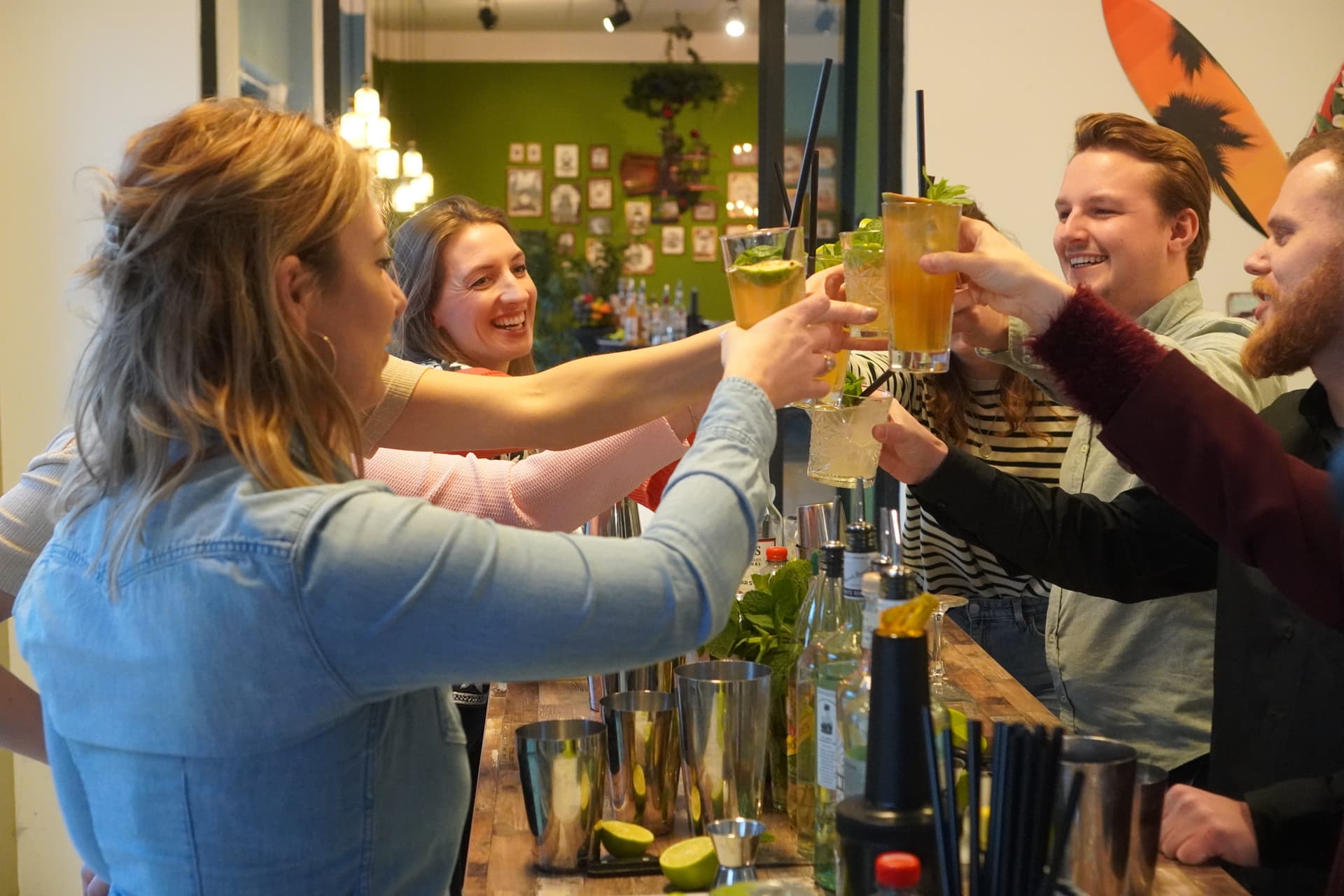We dagen jullie uit met een leuke cocktailquiz en oefenen samen flairbartending, spectaculaire jongleertricks oefenen. Natuurlijk ga je zelf aan de slag met het maken (en proeven!) van je eigen cocktails.