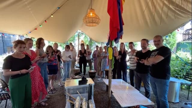 In deze interactieve workshop ga je samen met je team een swingend stuk muziek maken en uitvoeren. Aan de hand van percussie instrumenten en hightech randapparatuur neemt onze coach jullie mee in de ritmische wereld van de percussie. Een uitdagende muzikale ontdekkingstocht waarin je met elkaar diverse opzwepende ritmes in verbinding brengt en tevens gebruik gaat maken van (kern)woorden. Met deze woorden (bijvoorbeeld de kernwaarden binnen het team) schrijven jullie gezamenlijk een korte krachtige tekst die naadloos geïntegreerd wordt binnen het totale muziek stuk. De workshop wordt afgesloten met een spetterende uitvoering.