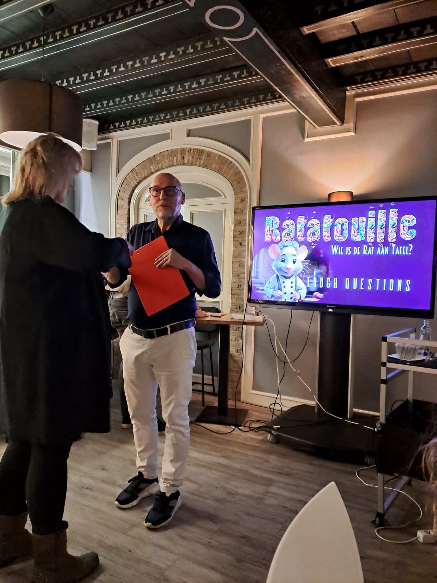 De show bestaat uit diverse uitdagingen voor lichaam en geest. Op een groot scherm maar ook in de app en vele handzame puzzels worden de kandidaten getest op hun kennis, inzicht en doortastendheid. Maar...  er is ook iemand in het spel die de boel wil verstieren. Dat is de Rat! Weet jullie team hem of haar te ontmaskeren en het meeste geld te verdienen dan winnen jullie, maar weet de rat onopgemerkt te blijven dan wint de Rat!  Aansluitend kan er ook nog gekozen worden voor een uurtje  DJ'en onder het motto Klaas Draait Door! Immers we hebben al een mooi strak geluid opgesteld.  LET OP: Prijs is P.P. en natuurlijk zonder eten en drinken want dat is afhankelijk van het restaurant en het drank arrangement dat gekozen wordt. En onze prijzen zijn altijd bespreekbaar.