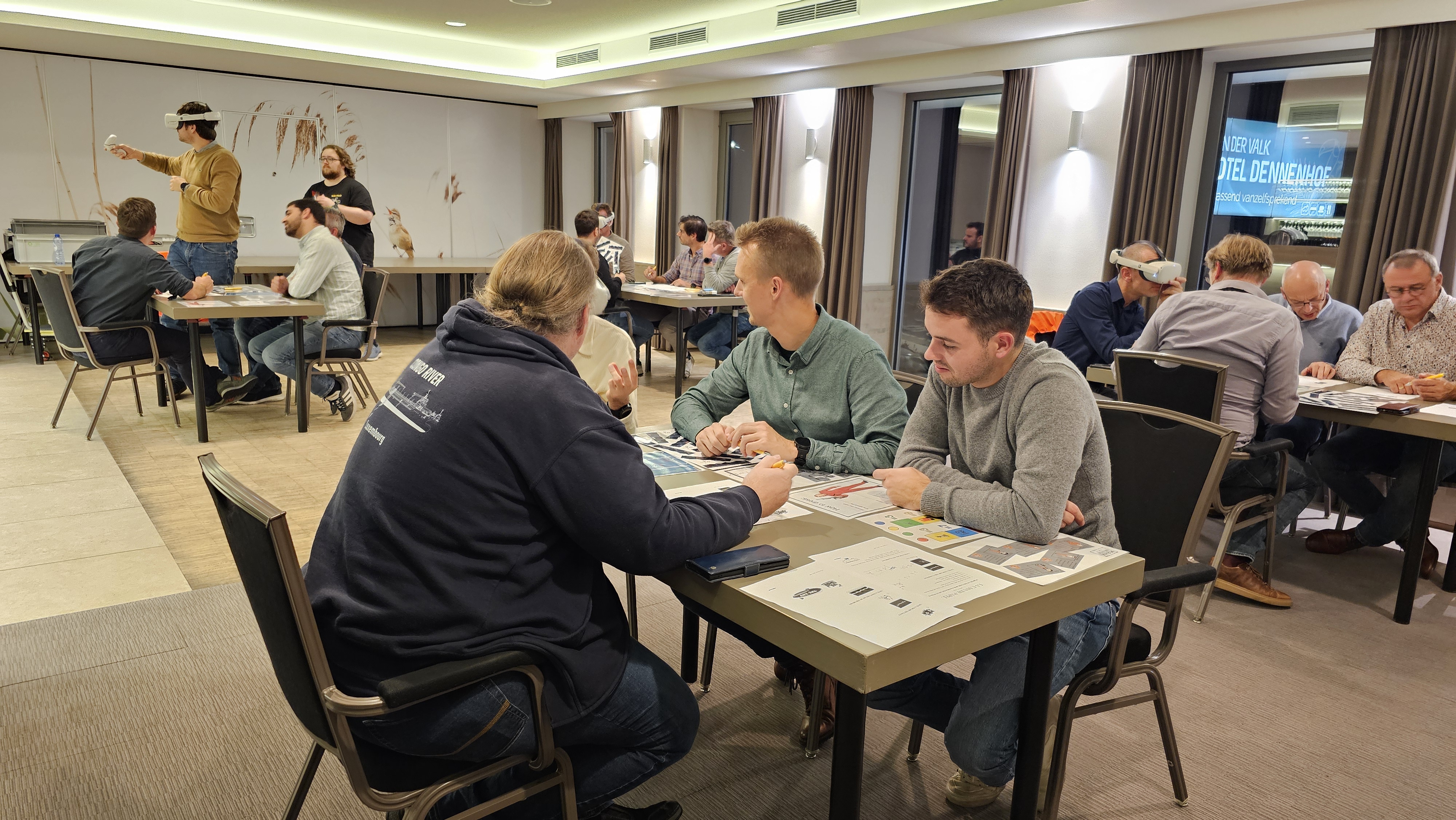 In beide gevallen zet je in de kleine teams om beurten de VR bril op, en los je de VR puzzel op met hulp van je collega’s, die de nodige instructies ter hand hebben. Mits voldoende tijd en ruimte voorzien we graag de mogelijkheid om nog even helemaal te ontstressen. Sla maar alles wat op je afkomt de vernieling in met een fancy laserzwaard. Dat alles op een vrolijk deuntje. Bye, bye, stress…