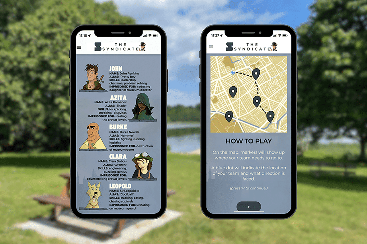 Eenmaal aangekomen op de startlocatie is het tijd om te beginnen met ons nieuwste City Escape Game: Het Syndicaat. Kun jij de gestolen formules terugvinden? Loop rond en ga in interactie met een stad naar keuze. The Syndicate is een op verhalen gebaseerd rollenspel, om je weg te vinden in de stad. Los leuke en uitdagende puzzels, raadsels en foto-opdrachten op.